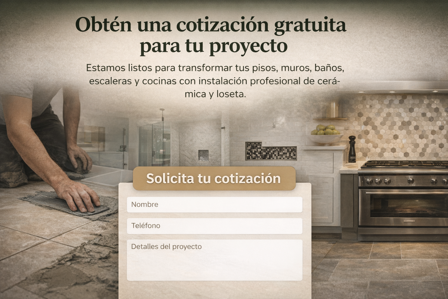 Pisos, muros, baños, cocinas y escaleras para casas, oficinas y espacios comerciales, en interiores y exteriores, con acabados profesionales y duraderos.